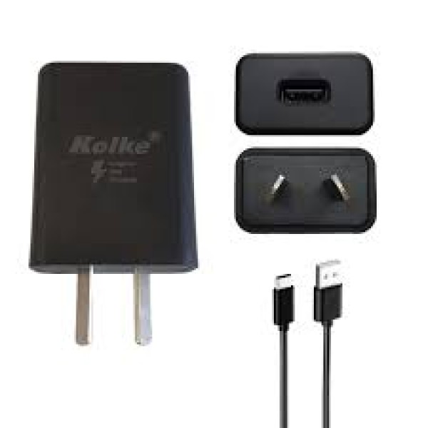 CARGADOR USB A 220V CARGA RAPIDA NEGRO 18WCON CABLE USB C de 1 METRO INCLUIDO